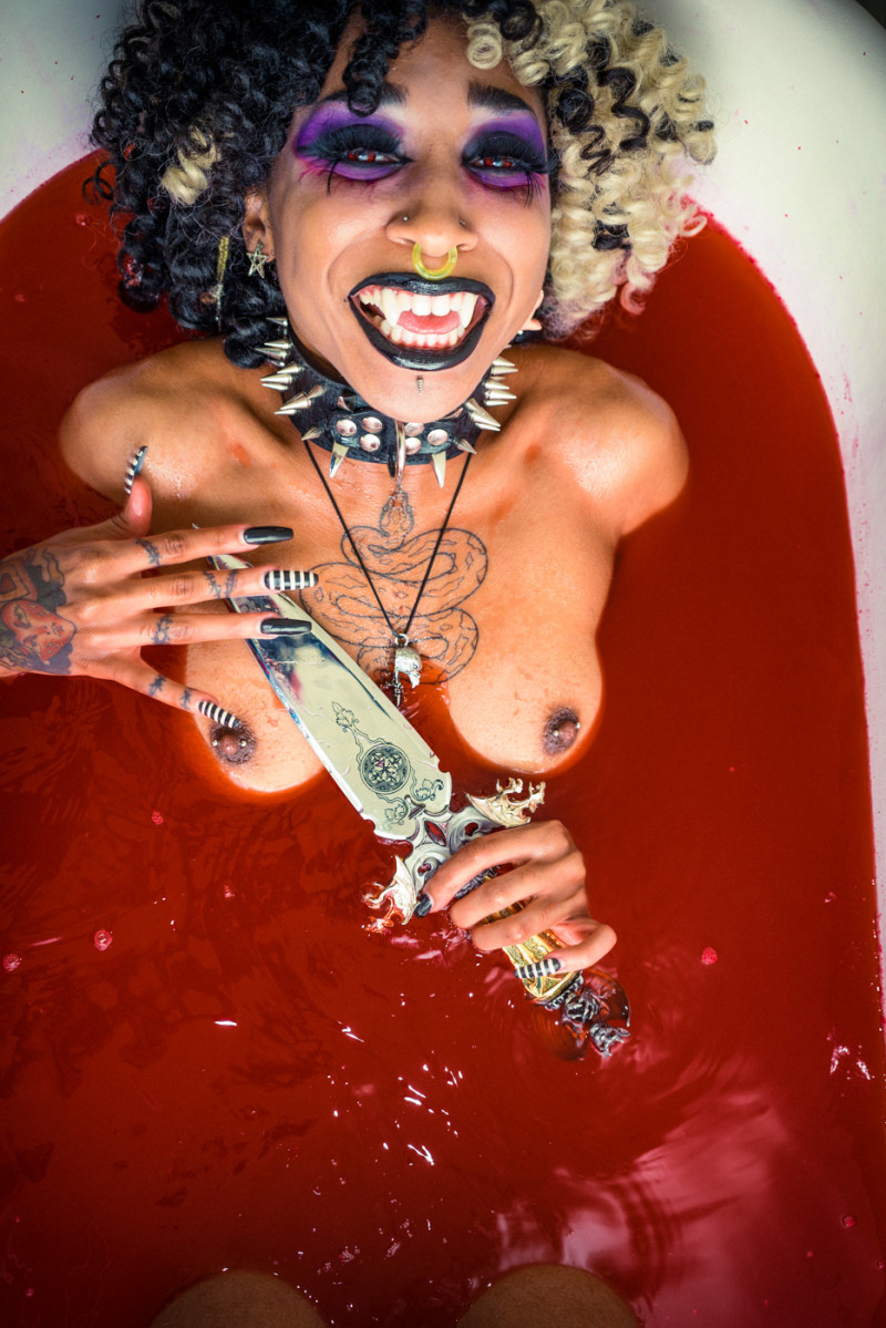 These images are meant to stand in opposition to horror’s long-standing reliance on violence against women. When women appear in perilous situations, they are framed as agents rather than victims. If a concept requires danger, I try to show that it is being embraced with humor and enjoyment rather than fear.