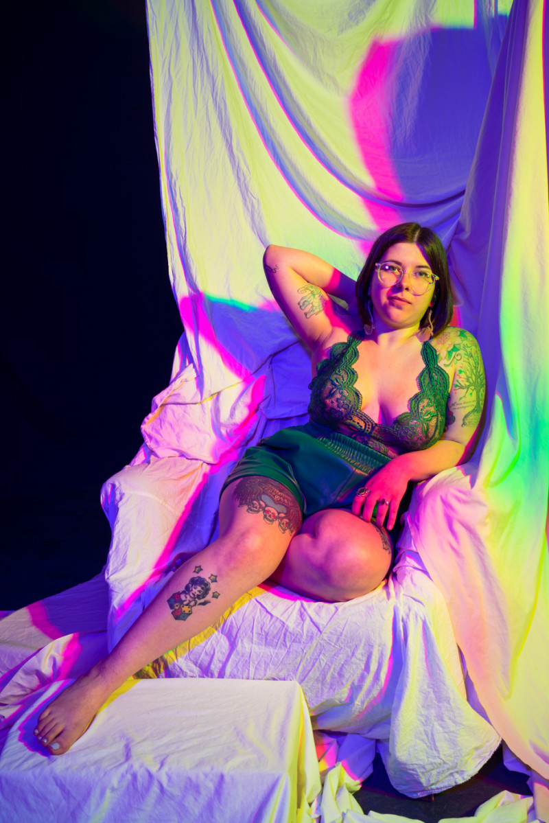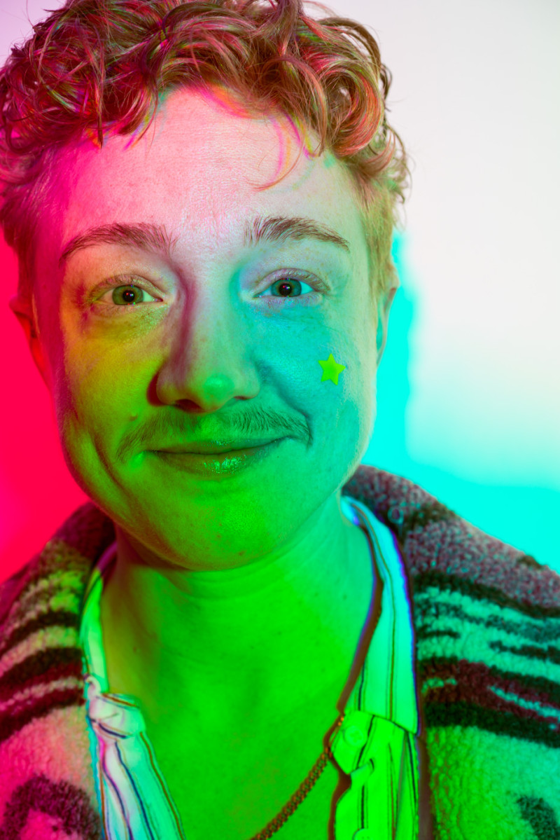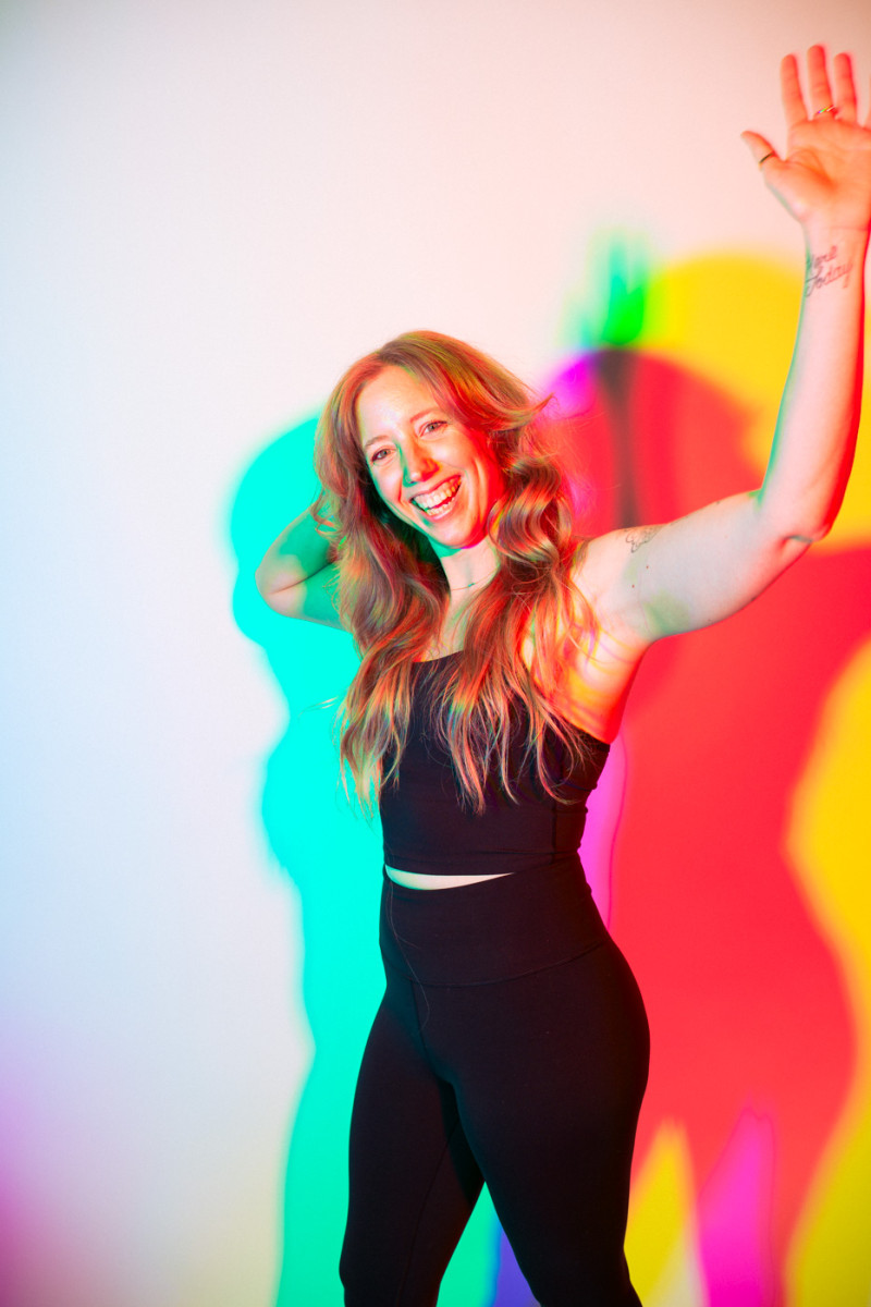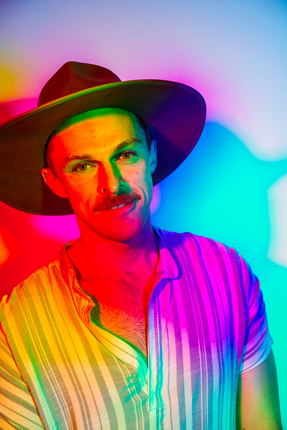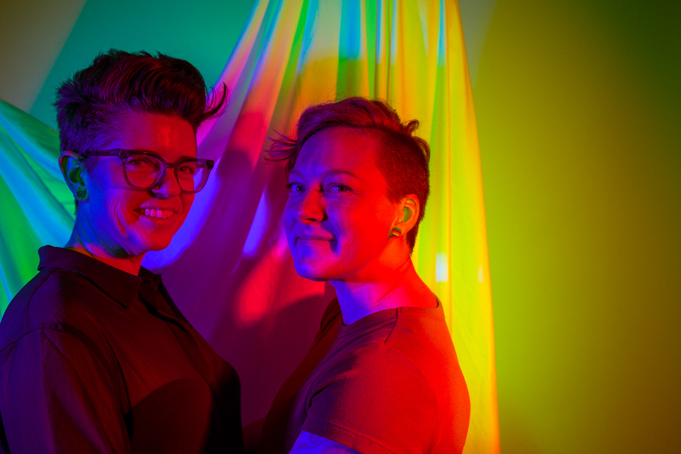 White light, as the human eye understands it, is composed of equal parts red, green, and blue. By isolating and recombining these colors in the studio, I can paint with light itself—an intentionally unstable palette that resists full control. In these portraits, shadows split and recombine, drifting in color around the body and allowing chance to shape the image as much as intention.